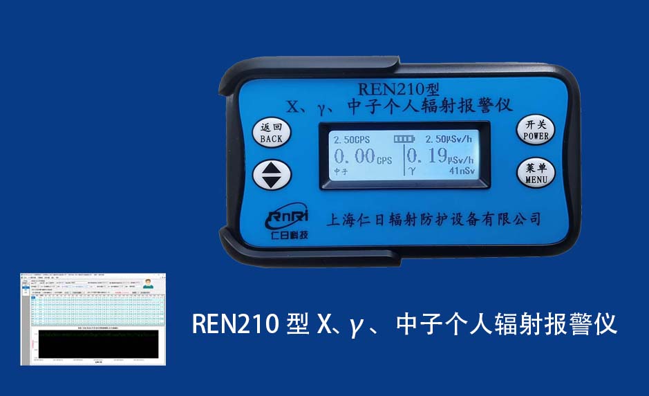 REN210型X、γ、中子個人輻射報警儀內置SiPM和鋰玻璃晶體組成中子探測器儀器,采用反照率方式探測中子射線,同時也能探測X、γ射線。因此它可同事監(jiān)檢測X、γ、中子三種射線。能顯示工作場所的劑量當量率和累積劑量,更換電池時,日期及累積數據能永久保存。可選配RenRiPersonal個人劑量管理軟件,該軟件可存儲多個人的歷史數據,能記錄日累積、月累積、年累積、輻照時長、計算平均劑量率、扣除或不扣除本底輻射,且以文字和圖譜的方式展現數據。廣泛應用于環(huán)保、化工、水泥、煤礦、土木工程、石油、醫院、疾控、進出口商檢、核電、加速器、機場、中子源庫和其他安檢、邊境控制海關檢測等領域中的工作人員進行個人安全防護監(jiān)測及放射性提示。